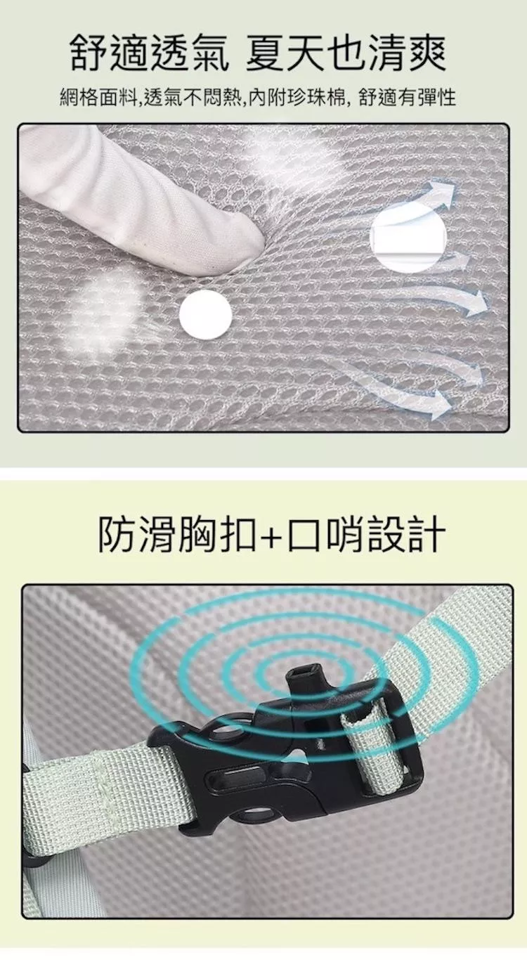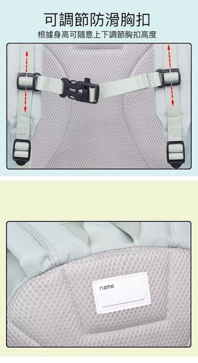 防滑可調節胸扣設計, 可根據身高調整胸扣高度