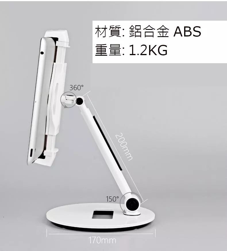 產品尺寸: 圓形底座直徑170mm, 支架長度200mm,重量:1.2kg