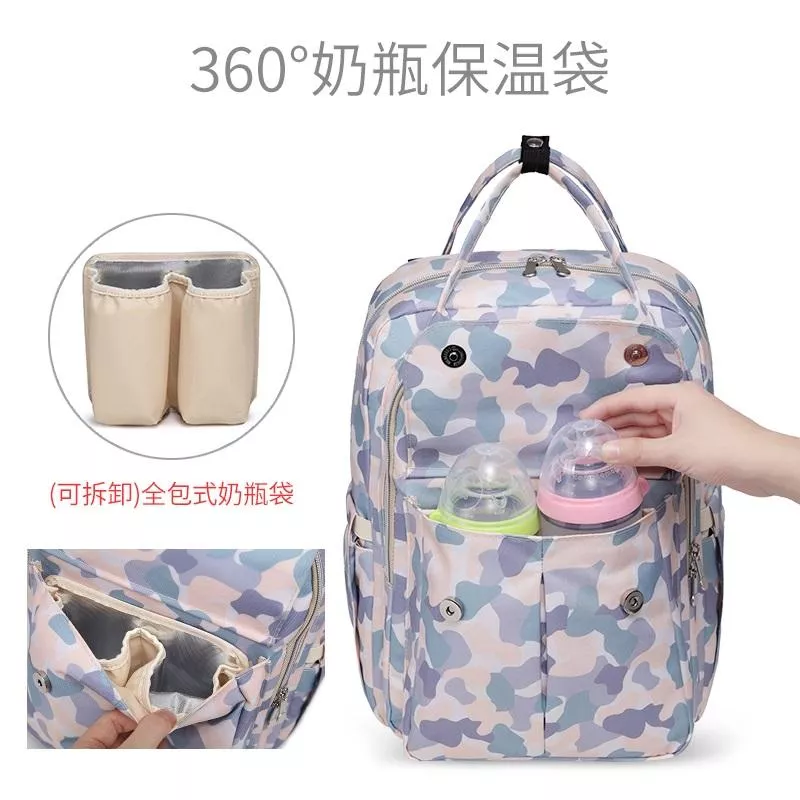 - 前面有2個可拆卸式的奶瓶保溫插袋, 食品級複合鋁箔材質