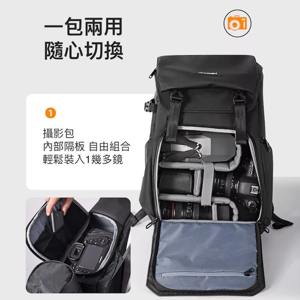 Prowell 兩機多鏡或一機3鏡1無人機 多功能相機後背包相機後背包 相機保護包 專業攝影背包 單眼相機後背包