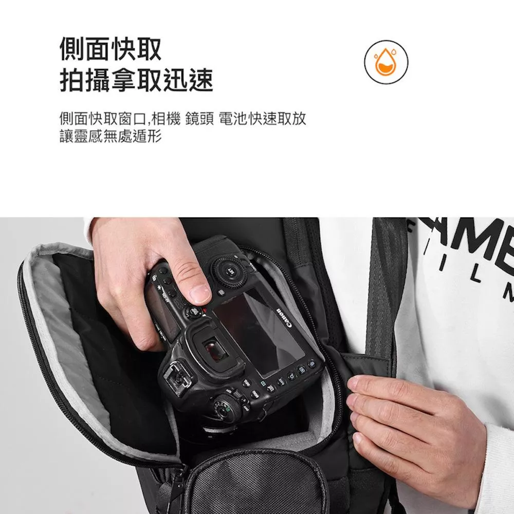 ✓側邊快取開口,取物更方便, 另有設計配件電池記憶卡收納夾層
