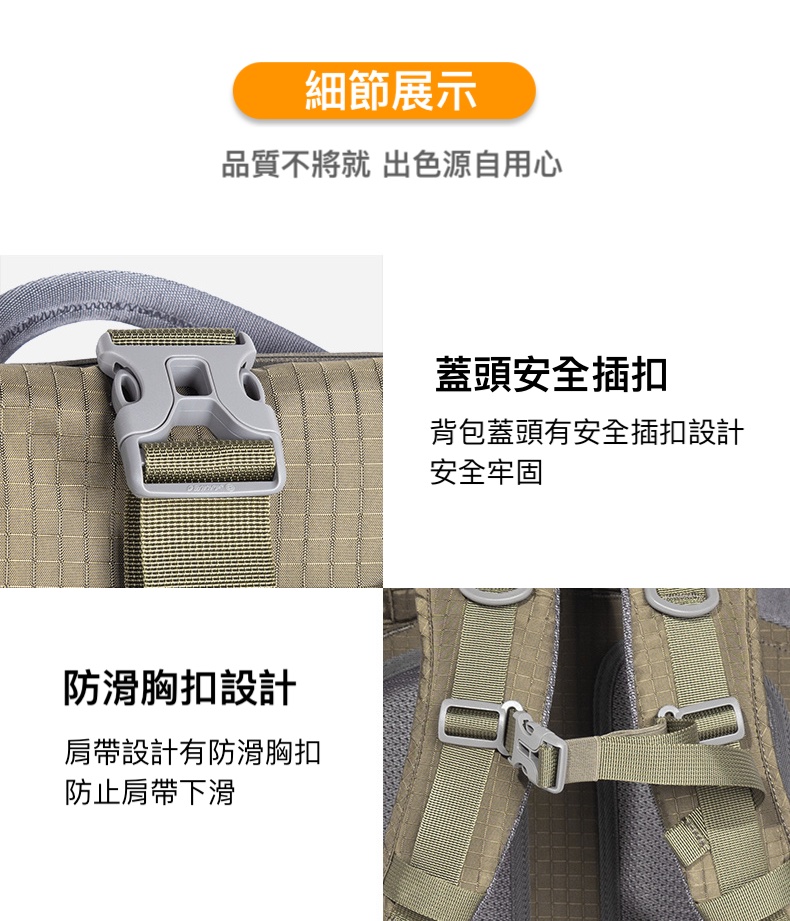 ✓雙向拉鏈設計及防滑可調節胸扣,使背部更貼合,減緩背腰壓力