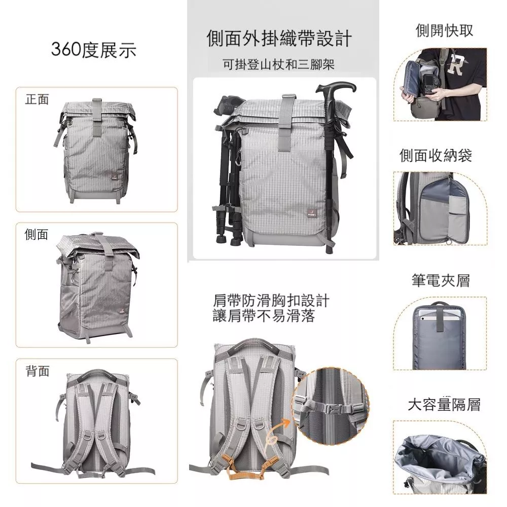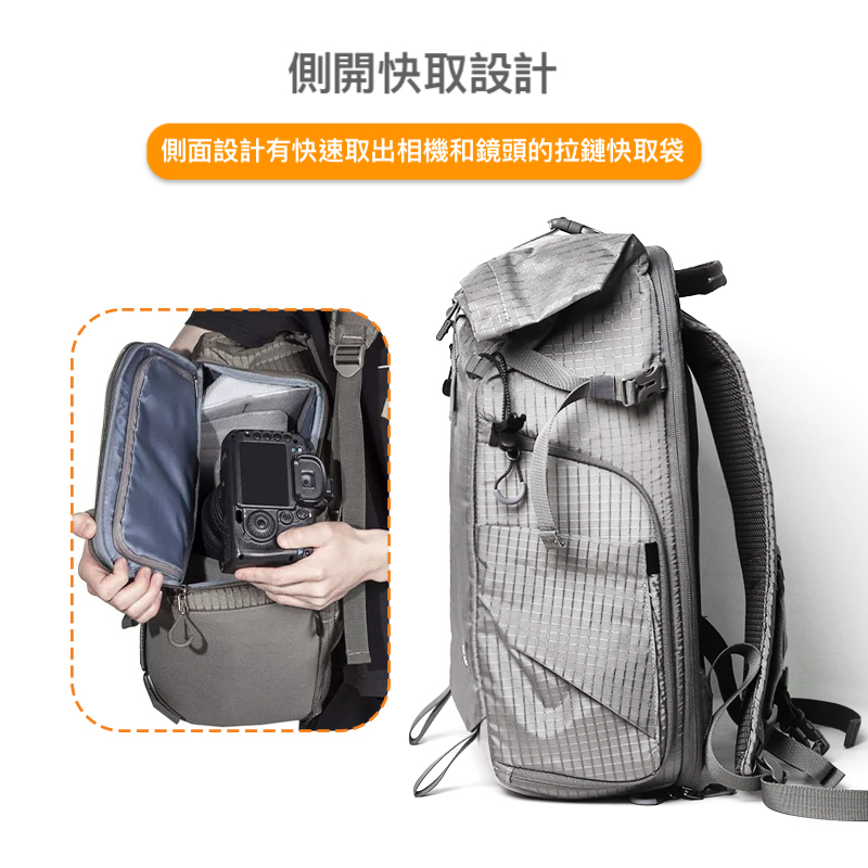 ✓外掛織帶設計,側面可外掛三腳架/登山杖等物品
