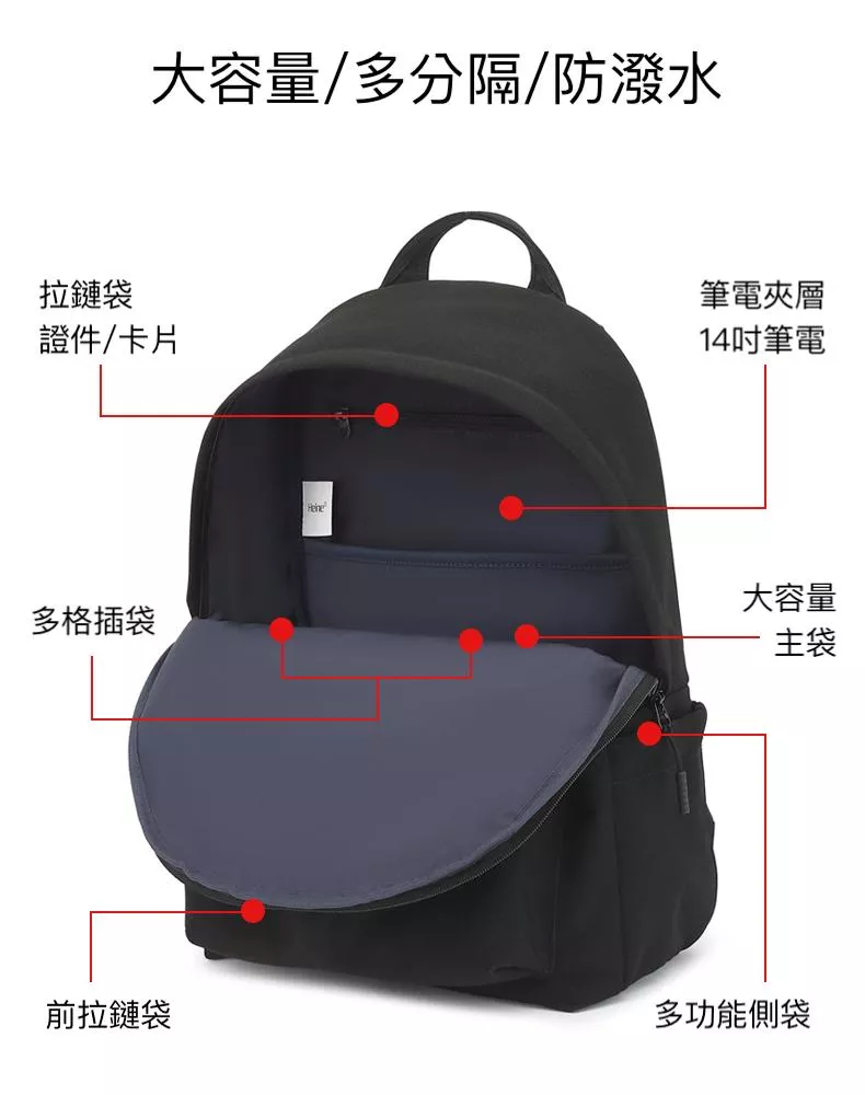 Heine 海恩 極簡風素面後背包 電腦包 大容量背包 14吋筆電包 WIN-260 防水包 可當書包