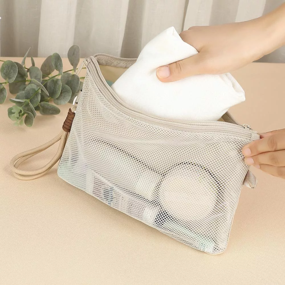 這款收納包採 「雙層獨立結構」 設計,一邊是透氣網眼、一邊是防潑水密封層,完美平衡收納的「便利性」與「隱私感」!