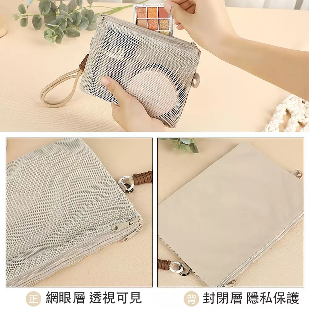 【雙層獨立空間】 分類收納超輕鬆。網眼面透氣可視,找東西一秒定位;密封面保護隱私,放衛生棉或私密小物不尷尬。