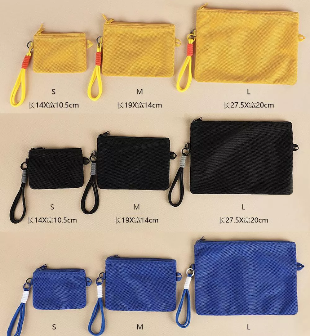 S (小)14 x 10.5 cm --> 收納藍牙耳機、零錢、唇膏、記憶卡、生理期小物