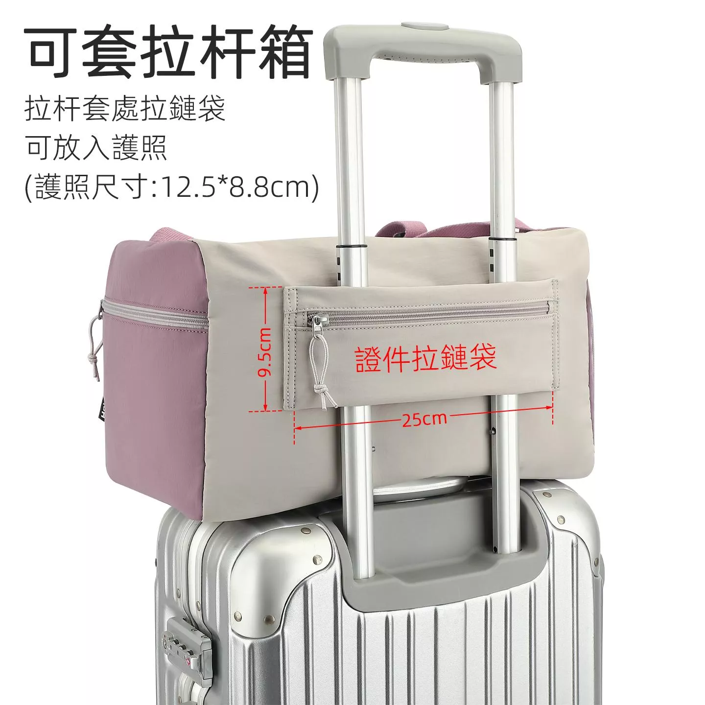 【出國旅遊好夥伴】:背部設有拉桿箱專用套口,可直接掛在行李箱上;套口處更貼心設計了證件拉鍊袋,護照、票卡隨手取用,安全又方便。